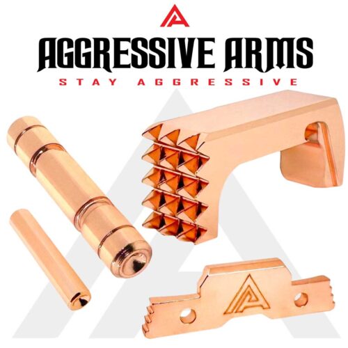 AGGRESSIVE ARMS SHINY COPPER DIMPLE PINS – EXTENDED SLIDE LOCK – EXTENDED MAGAZINE CATCH for GLOCK 43X & 48
